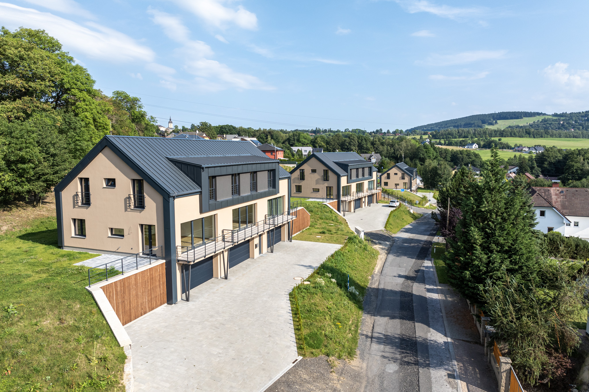 Panorama Ještěd je komorním developerským projektem v žádané obci Šimonovice u Liberce. V každém ze tří samostatných domů se nachází pouze 3 bytové jednotky o dispozici 4+kk (108-122 m²), s vlastní velkou dvougaráží (s umyvadlem a přívodem vody) a vlastní zahradou. Projekt nabízí velmi dobré standardy, jak v interiéru, tak exteriéru a nízké provozní náklady (energ. třída B). Dominantou jsou velká okna, která ze všech jednotek nabízí krásné výhledy na Ještěd a v kombinaci se zvýšenými stropy v přízemí umocňují světelnost prostoru. Samozřejmostí je podlahové vytápění v celém prostoru (k jednotce náleží vlastní plynový kotel) a kvalitní materiály, zejména velkoformátové obklady v koupelně, odolná vynilová podlaha, designové kliky a kování či interkom.